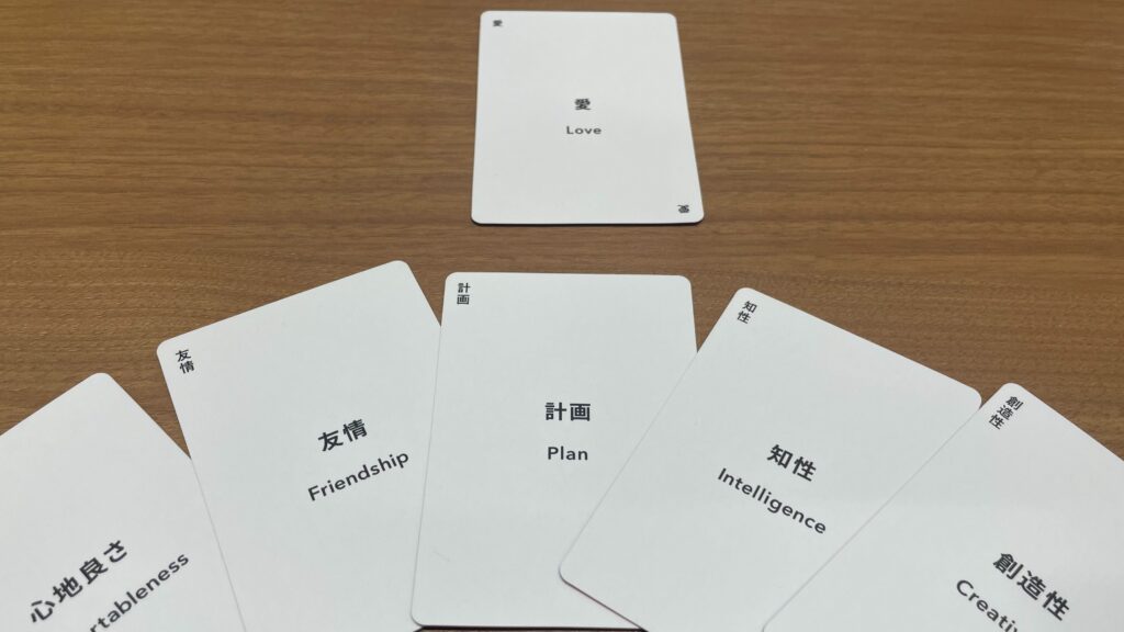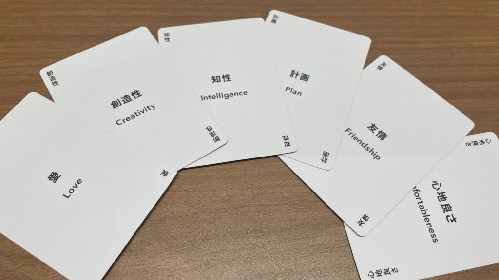 ゲームで使うのは「様々な価値観が書いてあるカード」だけ!